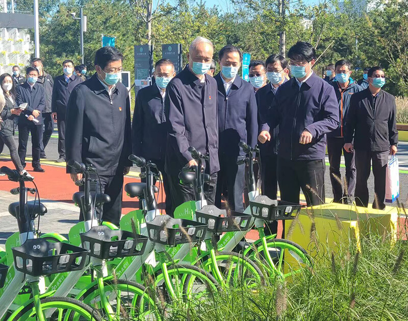 蔡奇書記一行視察了永安行氫能自行車,特別詢問了氫能源自行車的騎行里程、騎行時速等問題。