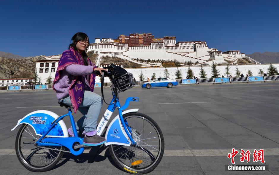 11月28日,內(nèi)地游客王伊騎行公共自行車(chē)經(jīng)過(guò)布達(dá)拉宮。
