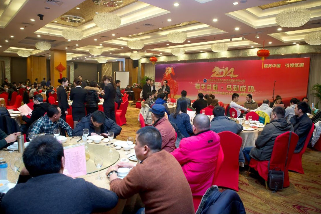2014年1月19日晚,主題為“攜手共創(chuàng) 馬到成功”的常州永安公共自行車系統(tǒng)股份有限公司”2013年公司總結(jié)表彰會(huì)暨2014年迎新春聯(lián)歡會(huì)”在奧體明都國(guó)際酒店隆重舉辦。此次參加活動(dòng)的同事來(lái)自全國(guó)20多個(gè)城市和地區(qū),共計(jì)300多永安人歡聚一堂。