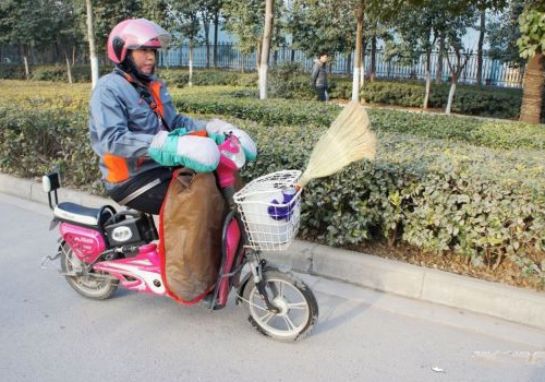 清晨6時(shí)50分,夜色還未褪去,一輛小型電動(dòng)車(chē)緩緩駛向阜師院新校區(qū)公共自行車(chē)站點(diǎn),騎車(chē)的人是阜陽(yáng)市公共自行車(chē)管理中心的巡檢員李莉,今年38歲。她的主要工作,是每天奔波于雙清路、二道河路、清河西路三條路段14個(gè)站點(diǎn),因此電動(dòng)車(chē)成了她最快捷的交通工具,車(chē)筐里還放置著一塊抹布、一罐水桶和一把小笤帚?!把矙z員的工作就是每天檢查站點(diǎn)的車(chē)輛、設(shè)備和保潔,并配合完成調(diào)度工作”。與記者簡(jiǎn)單地認(rèn)識(shí)后,李莉開(kāi)始了一天的工作。