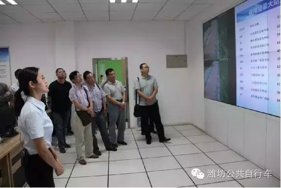 杭州考察團一行在管理中心觀看了濰坊市公共自行車項目宣傳片,了解