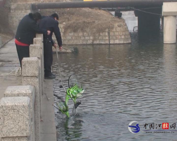 徐州公共自行車(chē)遭破壞四輛公共自行車(chē)被扔古黃河