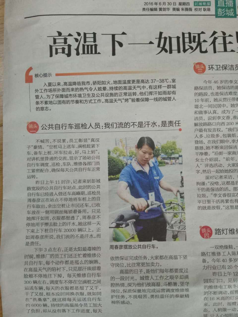 公共自行車巡檢人員:我們流的不是汗水,是責(zé)任
